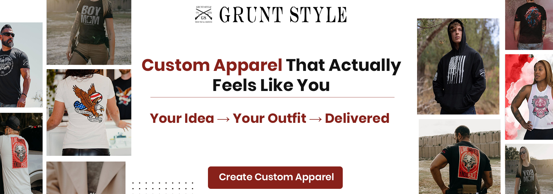 Design your own unique apparel at Grunt Style. Explore custom clothing options and bring your style to life with this special offer on gruntstyle.com.